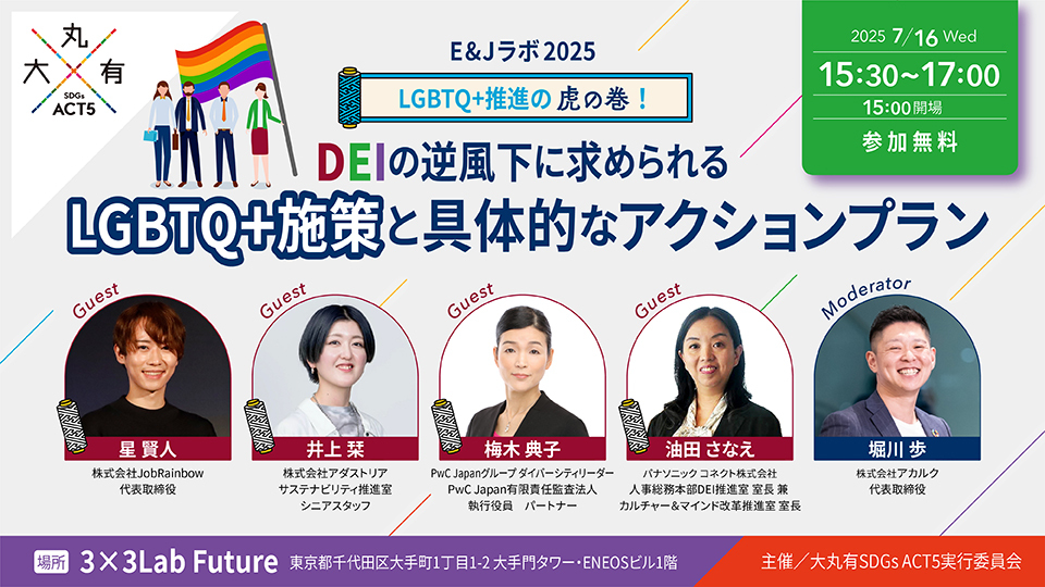 大丸有エリアを訪れるすべての人々にとってやさしいまちを目指すべく、多様な価値観に目を向けながら様々な視点からこのまちを見直していきます。